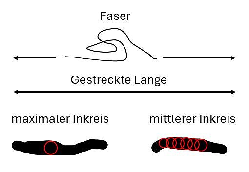 Die Gesamtfaserlänge ist die Gesamtlänge aller Fasern auf dem Analysefilter, also die Summe der gestreckten Länge aller Fasern.